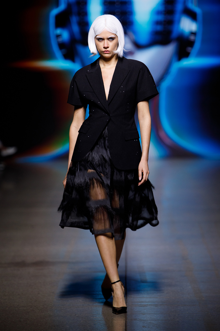 Silhouettes were confident but never loud. Oversized coats with precise shoulders, asymmetric wrap dresses, and high-neck blouses layered under sculptural outerwear offered a fresh perspective on timeless pieces. The overall mood was one of controlled freedom — clothing that moves with the wearer while maintaining presence.